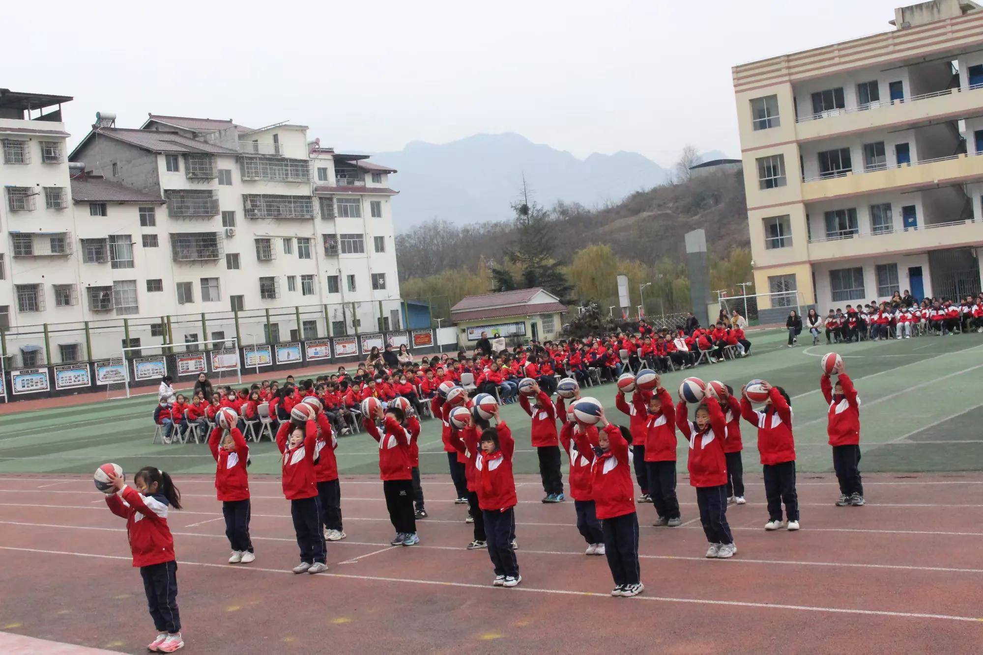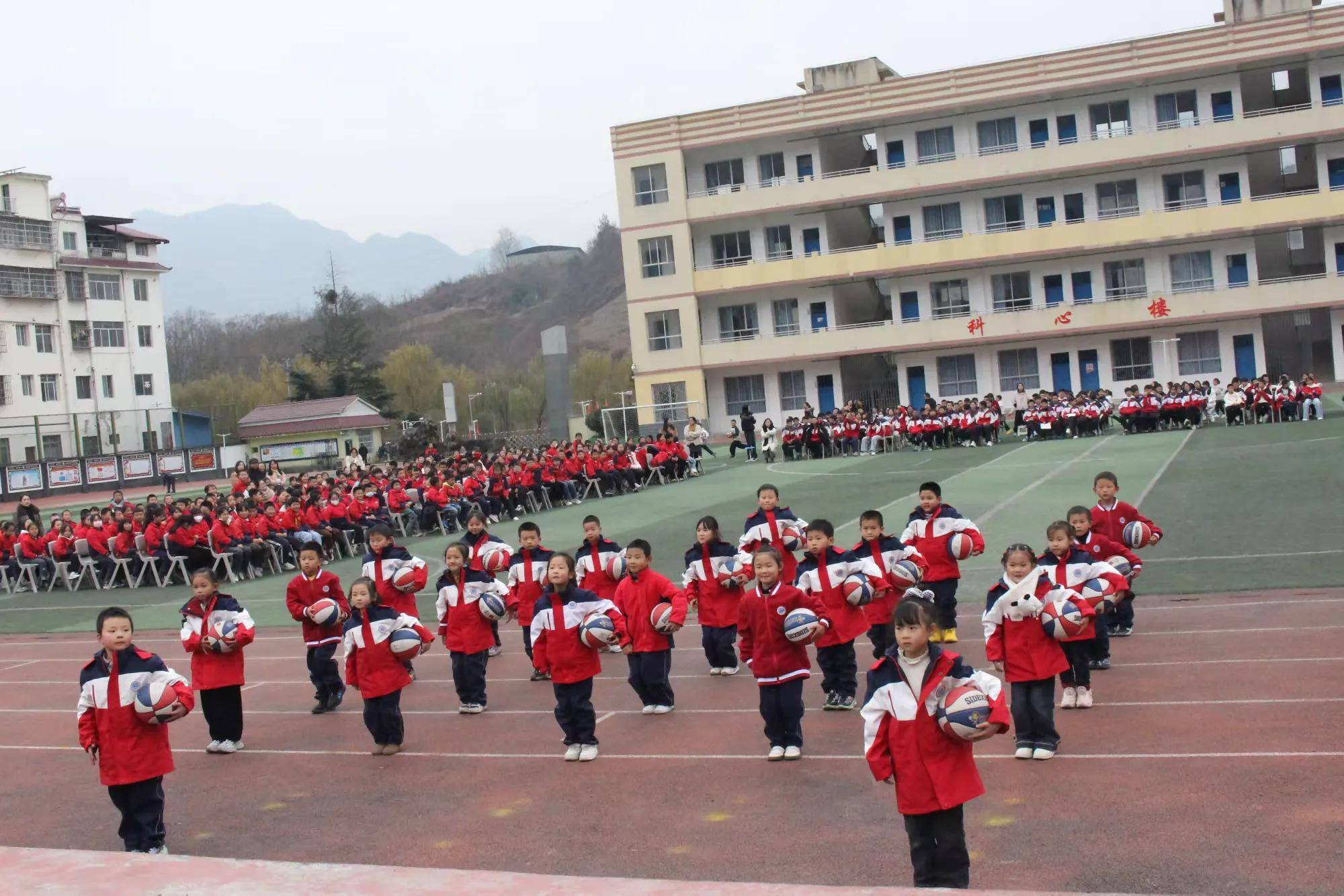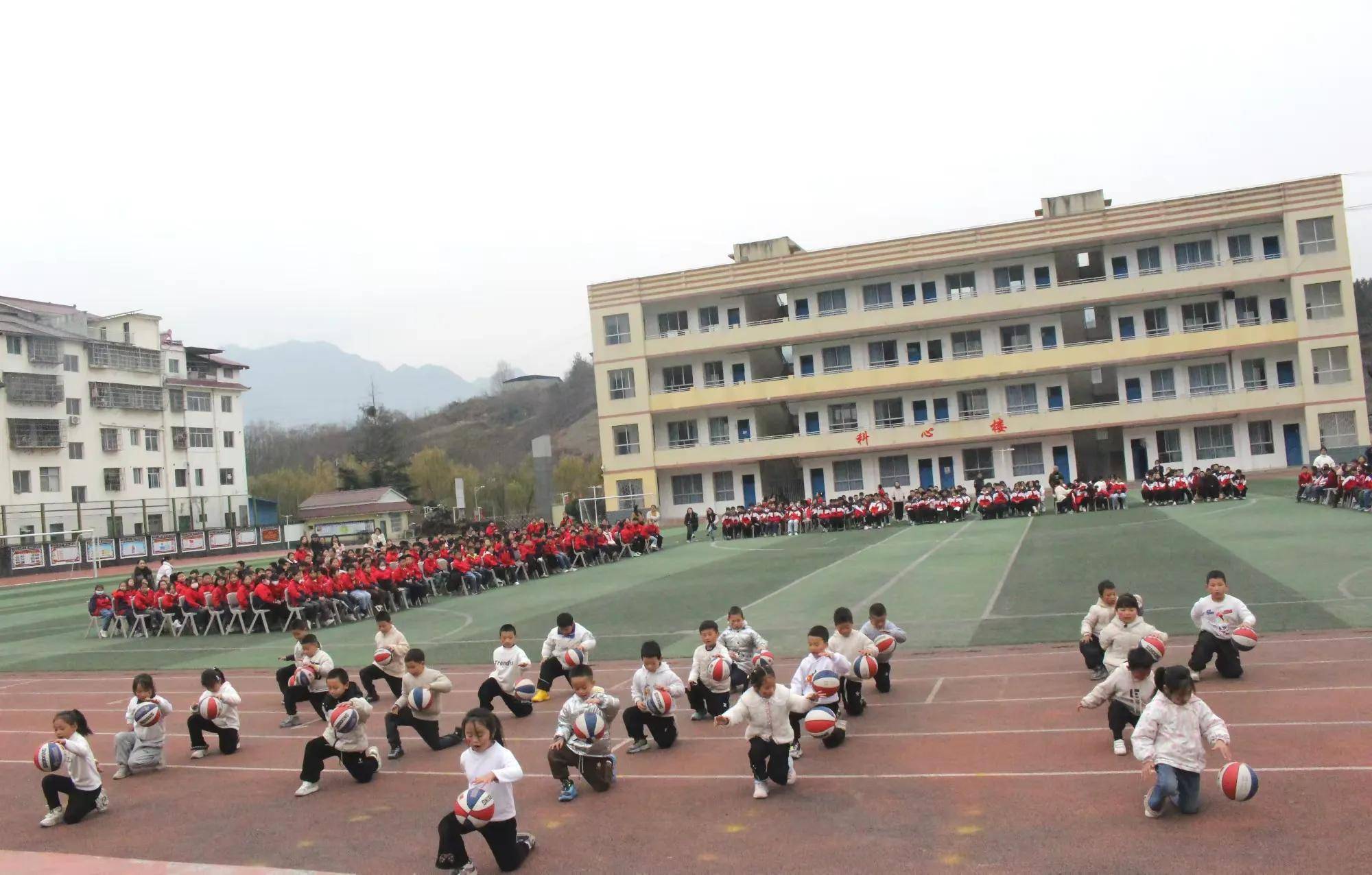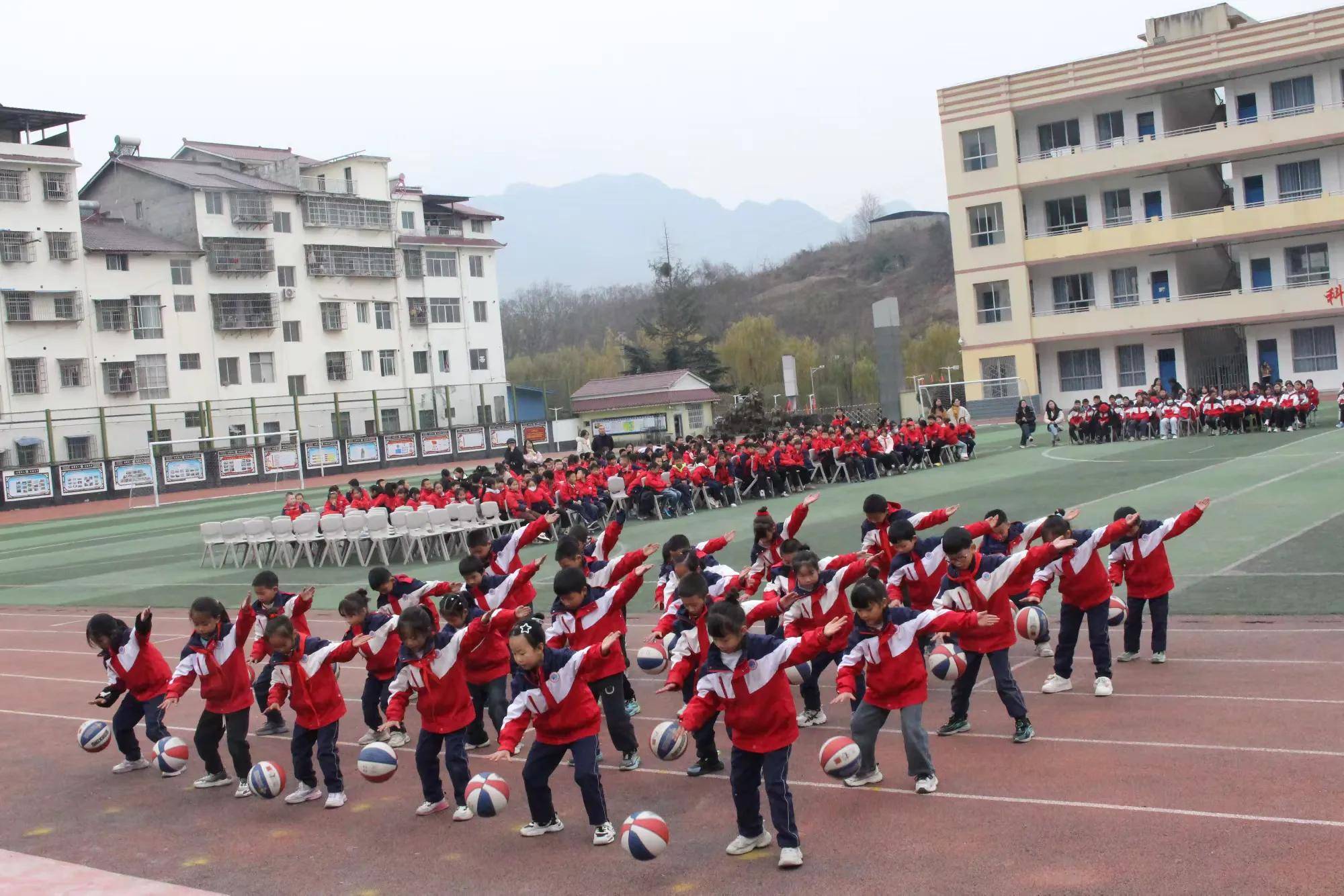 方阵如磐踏歌行,篮球起舞映青春。队列队形与篮球操展示环节衔接有序、亮点纷呈。篮球操展示中,小队员们手持篮球登场,动感音乐响起时,运球、抛接、旋转等动作整齐划一,将体育技巧与舞蹈韵律完美融合,充分展现出学子们扎实的训练功底与蓬勃朝气。随后的队列队形展示气势如虹,学子们身姿挺拔、队列整齐,转体、齐步、方阵变换间,尽显少年意气与团结力量。